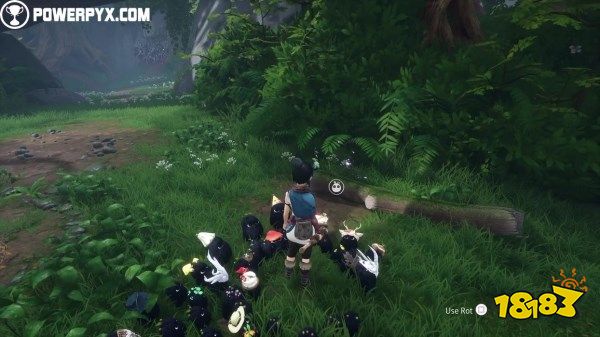 在上面一个冥想地点的森林之泪所在位置对面是一片新区域,里面也有一个森林之泪,在旁边的枝叶上使用它可以在原木下面找到这个腐灵。