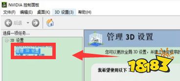 2.点击“管理3D设置”,然后切换到“程序设置”选项卡选择尼尔人工生命;也可以选择全局设置。