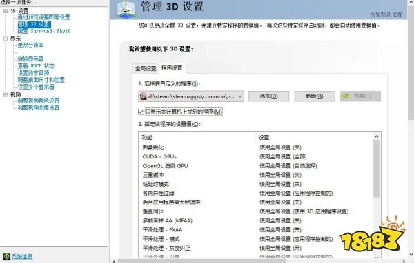 2.选择管理3D设置->程序设置,再选择nier,没有话就添加进去