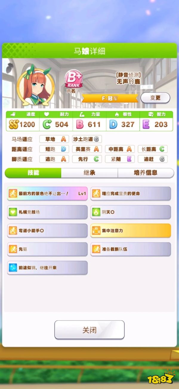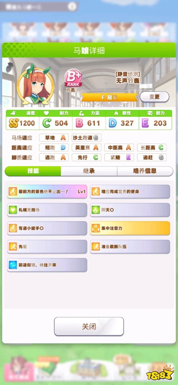 首先是培养效果图,速度点满,少许兼顾耐力和力量(根性和智力随缘):