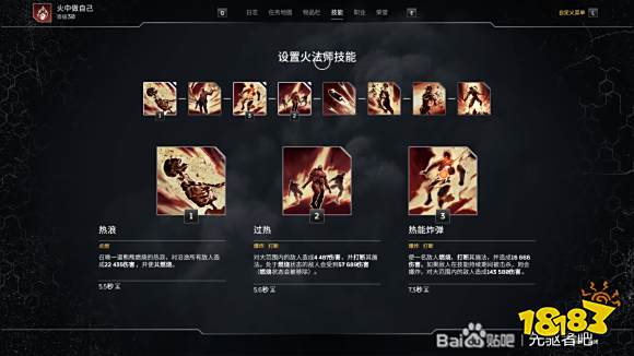 技能选择热浪,过热,热能炸弹,热浪和热能炸弹作为燃烧和增伤挂件,过热做主要输出。