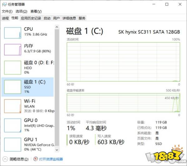 1、首先检查永劫无间的安装位置,打开任务管理器——选择性能——磁盘;