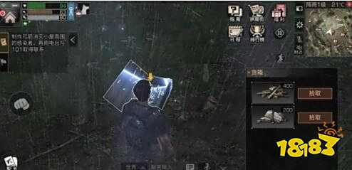 首先进入101开发区营地后,在游戏的地图里找到蓝色标点,我们可以根据地图位置寻找到准确坐标,然后可以很清楚的看到在坐标处有一个未打开的箱子,我们选择开启箱子后全部拾取箱子中的材料,将材料拾取完毕后我们就可以点开配方进行制作了。