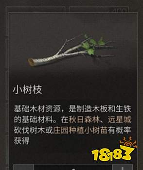 小树枝是游戏的基础材料,是制作木板和生铁的基础材料