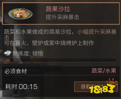 以上就是明日之后蔬果沙拉的配方,蔬果沙拉可在篝火、壁炉或家中烧烤炉上制作。