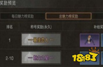 在情人节魅力榜总榜中排名第2-10位,可获得魅力之星永久称号,是一个紫色永久称号。此外还有配方残页及其他奖励。