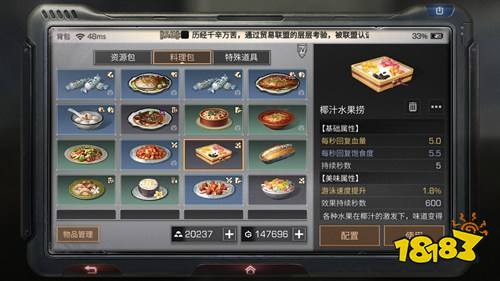必备食材:水果+椰子(海岛地图砍树掉落)