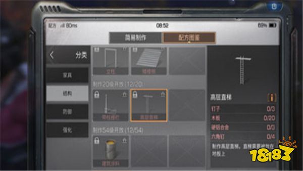 制作配方:钉子3个、木板20个、硬铝合金3个、六角钉4个
