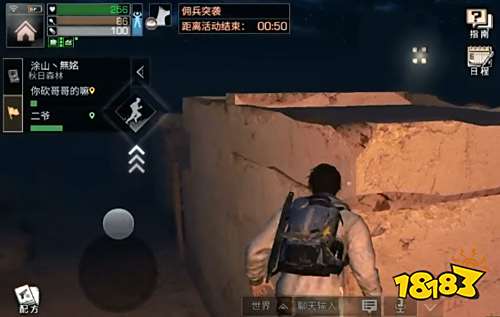这边我们要卡好点,蹲在墙边缘,掏出你的武器,在这个点打他,他是不会还手的,这就是所谓背后偷袭!