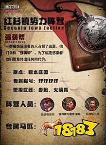 红杉镇这里是由两股势力在控制着这个西部小镇。分别是强袭帮和护卫队,加入不同的阵营后,还是可以在红杉镇刚进来的地方找亨特或者莱斯进行更换阵营的。可以查看自己的档案,所属阵营以及晋级等级的。根据自身的职位等级不同,可以解锁更多兑换物资与头衔奖励。