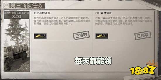 做完瑞秋的新手任务之后,每天我们都可以去101营地大厅那领取第三商队任务获得金条,任务都比较简单,主要找箱子,挖矿,杀怪,杀怪会难点,新手要注意边走边打躲避伤害,不要跟怪物硬杠,不然先倒下得肯定是你。