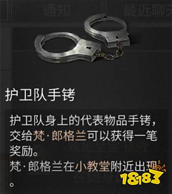 护卫队身上的代表物品手铐,交给梵·郎格兰可以获得一笔奖励。