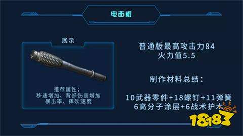 配方介绍:武器零件*10、螺钉*18、弹簧*11、高分子涂层*11、战术护木*6