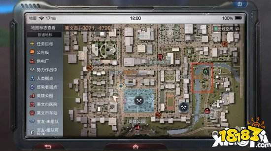 三个军营击杀雇佣兵,中间区域为两个宝箱,以及聚集的感染者刷新点。