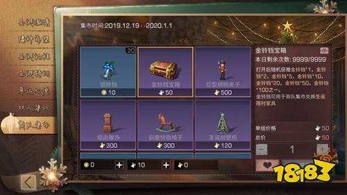 12.19-1.1期间,每日可在界面上领取冷杉树苗,在庄园中种植必得银铃铛与金铃铛。金铃铛与银铃铛可以在商队集市内兑换圣诞专属物品。