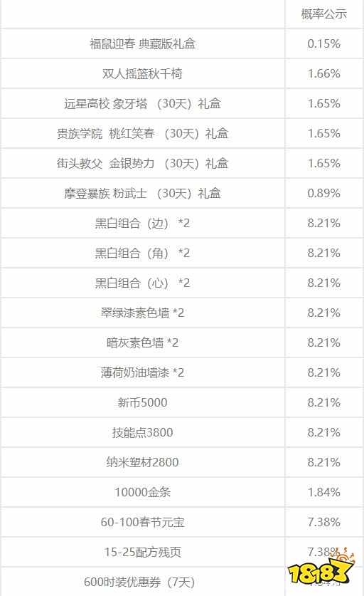据了解,目前运气不错的玩家可以用4个648抽到这套衣服,有些玩家甚至用7个648抽到了两套,还能转赠给好友一套。但是也有玩家运气就不那么好,用了7个648都没有抽到1套。好吧, 我们一起来看看网易发来的爆率表吧。