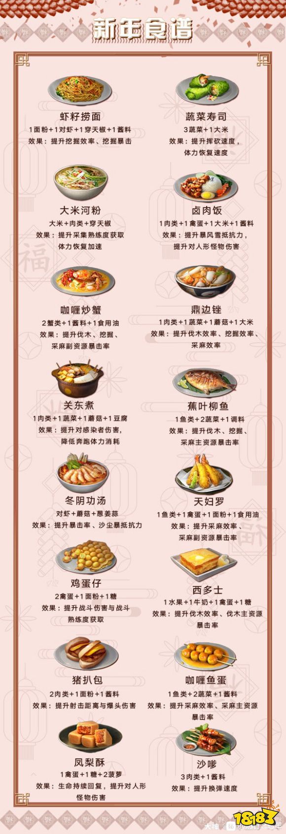 明日之后2020新年食谱怎么做?明日之后2020新年食谱是什么?来看看18183小编带来的明日之后2020新年食谱大全