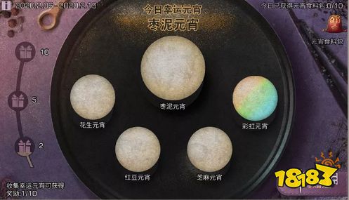 每日在野外地图通过采集、战斗、钓鱼等行为可随机获得元宵食料包,打开后将随机获得元宵食材。元宵食材配合面粉可制作出不同口味的元宵,每日随机指定一种幸运元宵,通过制作或获赠一定幸运元宵时,还将获得阶段性奖励。