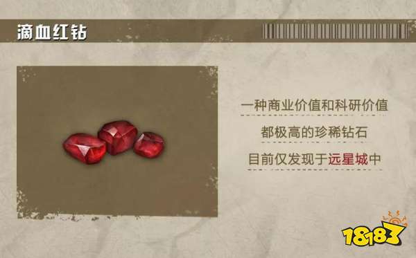 滴血红钻是一种商业和科研价值极高的钻石,大量散落于远星城中。