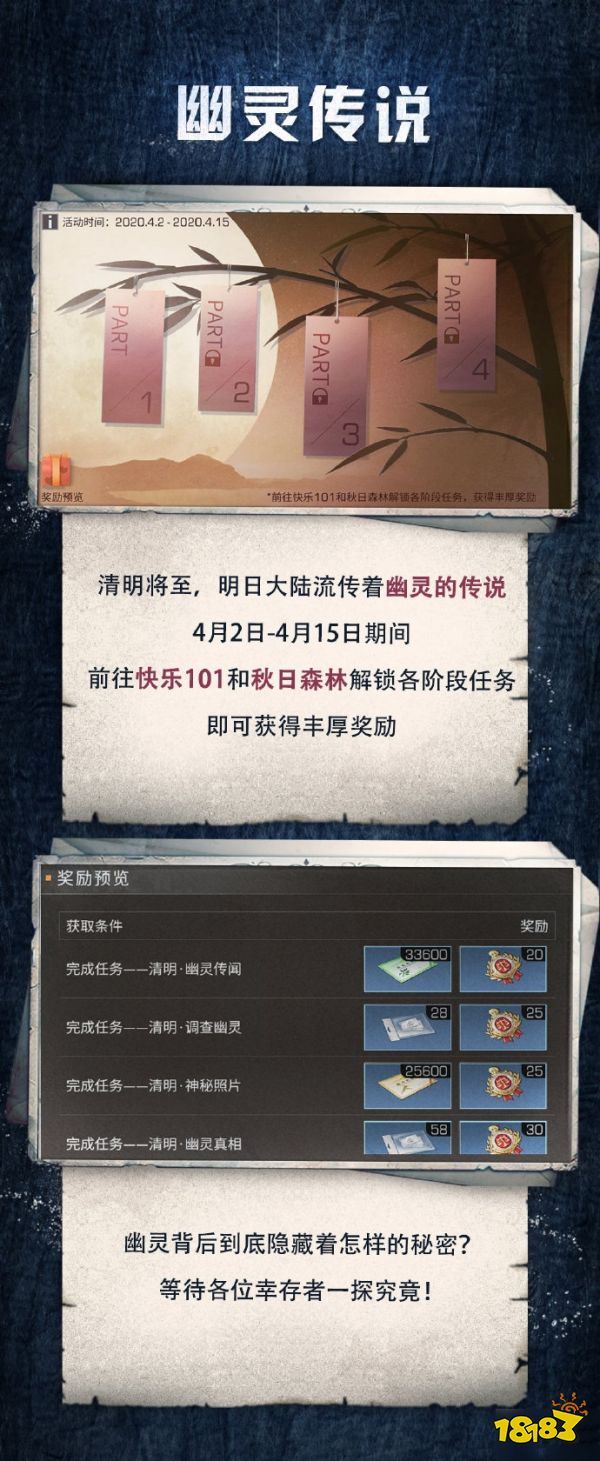 明日之后近期上线了清明节新活动——幽灵传说,玩家参与其中即可获得丰厚的活动奖励,但还是有很多小伙伴不知道活动时间及奖励,也不知道幽灵传说怎么玩。接下来小编就为大家带来明日之后幽灵传说活动的详细介绍,一起来看看吧!