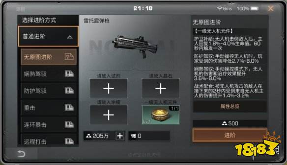 当对武器进行进阶时,无人机元件能产生以下四种特技:
