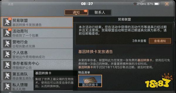 2、基因转换卡将于2021年11月5日零点过期,请大家尽快使用哦。集结了世界上最尖端的生物技术,使用后可以改变自身的基因,从而转换种族。