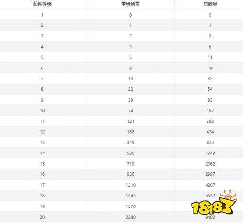明日之后配件在升至不同等级时所需的材料数量都不同,具体材料数量已放在图中。