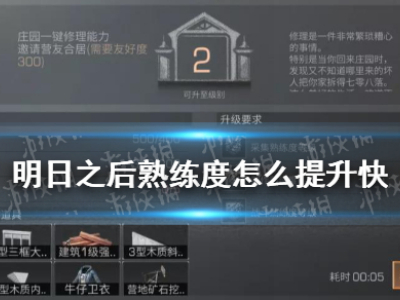 明日之后熟练度怎么提升快?熟练度是明日之后中升级庄园所必须的条件之一,那么采集、制作、战斗熟练度该怎么提升,庄园又该如何快速升级呢?接下来就让我们一起了解一下吧。