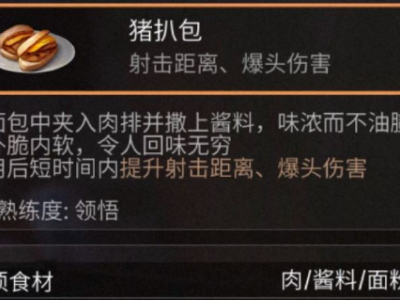 在明日之后里,食用猪扒包所获取的加成是射击相关的,那么怎么制作呢?下面就为大家带来详细的攻略介绍,一起来看看吧! 猪扒包配方攻略 猪扒包: 2面粉+1酱料+1肉 以上就是明日之后猪扒包怎么做的全部内容,不知道各位亲爱的小伙伴是否掌握了呢?希望能提供些帮助!如果还有其他疑问,欢迎访问