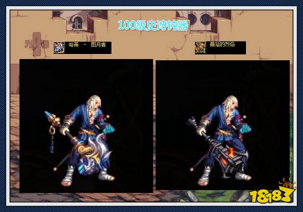 100级史诗钝器的设计,还是颇为有特点的,图月者武器似乎是“龙头”,而蔓延的烈焰则是灯的形式。钝器不仅属性强大,连设计都很用心,外观不比一些幻化的差。