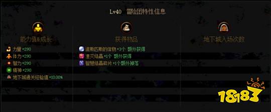 升级至40级冒险团可获得290点四维加成,相比于35级冒险团提升并不算太大,仅多15点四维。同时,升级至40级需要大量的经验,若非十分追求细节的大佬可以慢慢升级冒险团。
