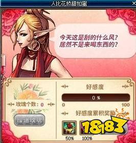 紧接着就是“人比花娇甜如蜜”活动,通关推荐地下城可以获得玫瑰,然后送给索西亚即可获得玫瑰武器装扮和帽子装扮。值得注意的是,玩家每天只能获得一朵玫瑰,每朵玫瑰可以增加10%的好感度,这种机制还是非常棒的,不会耽误玩家们太多的时间。达到50%完成度可以获得武器装扮,100%熟练度可以获得帽子装扮。