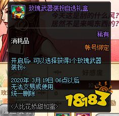 注:玫瑰帽子装扮和玫瑰武器装扮都没有任何的属性,而且无法分解、染色以及合成。玫瑰帽子装扮属于高级装扮,可以和其他高级装备组成套装效果。