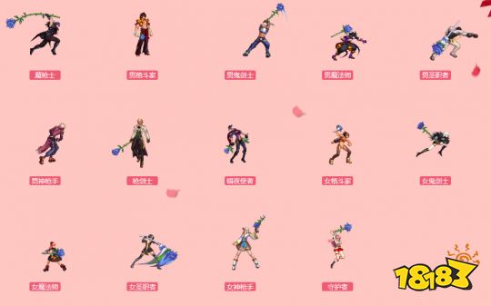 个人觉得像魔法师或者格斗家的都还不错,有点像捧花的感觉。当然具体还是看玩家们个人的审美和爱好来选择具体领给哪个角色。