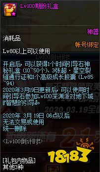 从3月5日到3月19日(奖励只能领到18日)可以每天获得一个100级期盼礼盒,礼盒内有一个时间引导石神秘礼盒,可以从10~50个时间引导石中随机抽出。