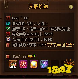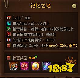 “无底坑道”每日特殊奖励次数3次,“记忆之地”每日特殊奖励次数3次,翻牌和击杀怪物有几率掉落成品装备。