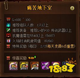 地下城“痛苦的地下室”和“暗黑神殿”:LV100可以进入,难度中等,推荐超界、泰波尔斯装备。