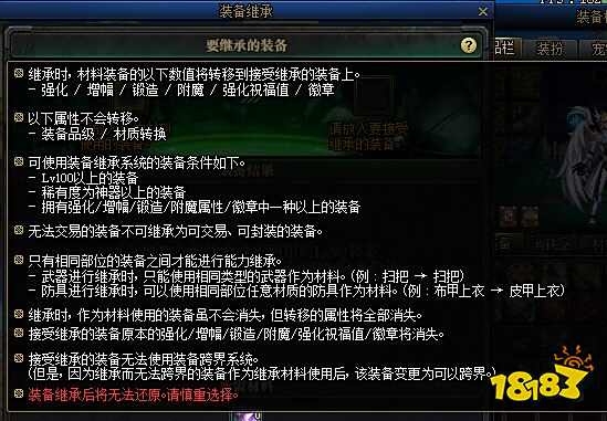 游戏《地下城与勇士》中传说装备是可以继承到史诗装备上的,装备继承是将一件100级神器以上是装备打造转移到另一件相同部位的装备上,需要拥有强化、增幅、徽章、锻造和附魔属性中任意一种以上,可交易的装备无法继承。
