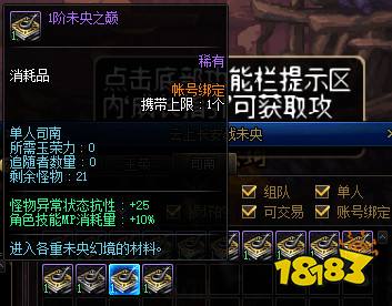 - 司南的入场人数分为【单人】司南和【组队】司南,【单人】司南只允许1名玩家进入挑战,且有概率掉落更高阶的新司南;【组队】司南允许1~4名玩家进入挑战,使用【组队】司南入场未央幻境地下城只会消耗队长的司南,队员只需要满足入场的玉荣力条件