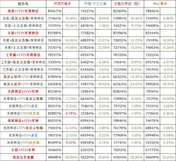 最后一栏是轮回全身533搭配,对比的是手搓+777+军神神话