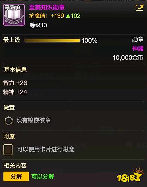 公会勋章,加持的智力很多,对智力型职业加成巨大