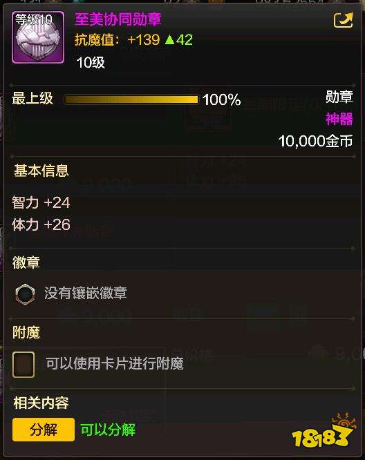公会勋章,加持的智力很多,对智力型职业加成巨大