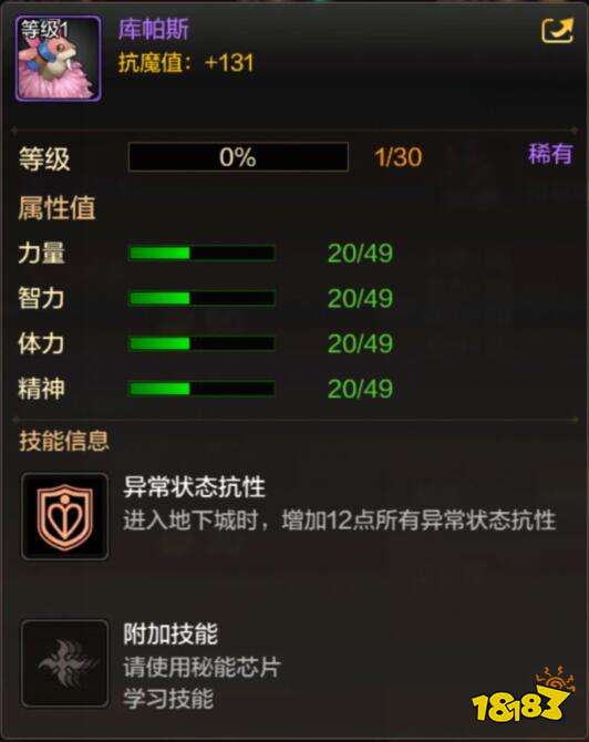 DNF手游宠物库帕斯怎么样?库帕斯是稀有宠物中的一种,有着+131的抗魔值,下面就来给大家详细介绍一下库帕斯的属性和获得方法。