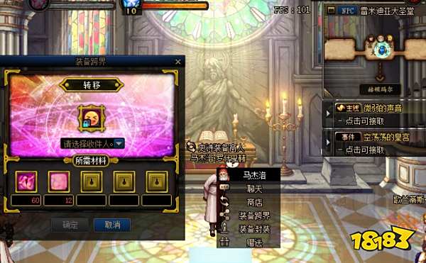 在地下城与勇士游戏中,神器装备跨界时所需的材料是上级元素结晶和神器灵魂,根据神器装备的等级不同,跨界时所需的材料数量也不同,可以进行神器装备跨界的NPC是马杰诺·罗什巴赫,地点是在雷米迪亚大圣堂。