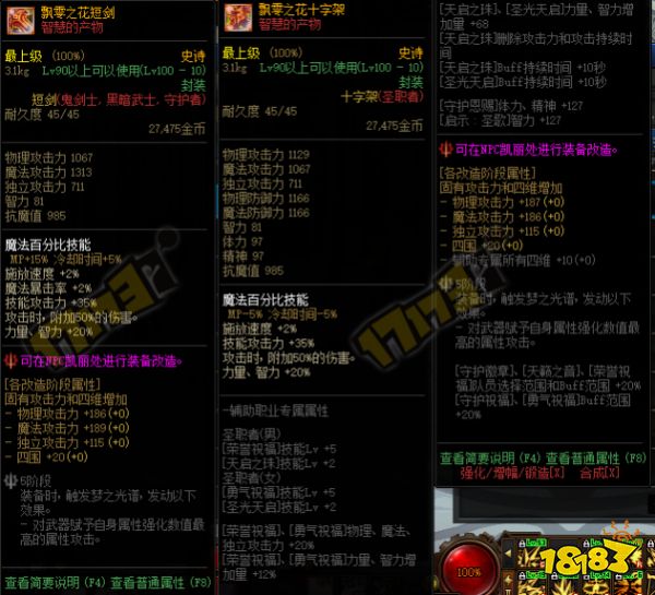 该武器除了十字架/扫把外,所有属性相同(魔法百分比部分,如果是物理职业则为物理百分比,固伤职业则为固伤技能,是根据不同职业进行显示的)。