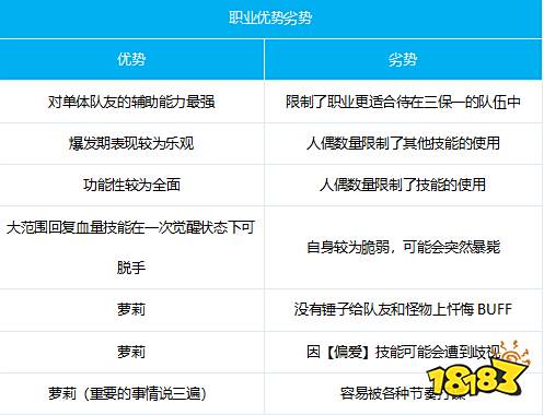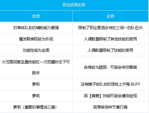 职业现状因人偶机制及身板太脆的问题易遭诟病,但仍有输出职业喜欢其较高奶量,三种奶系职业中人数最少。