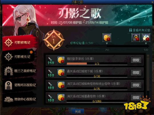 修炼记共有5part,而偷跑刃影没有成长记这一part,成长记与以往挑战角色升级获取奖励相类似,达到指定等级即可获取等级礼包奖励。其余4part按照每个累积任务需求完成即可领取修炼经验值点数。这就是上文所提及的为什么盲目刷雷鸣废墟不可取,因先完成3地区修炼记任务获取修炼值,再埋头刷雷鸣废墟至满级。
