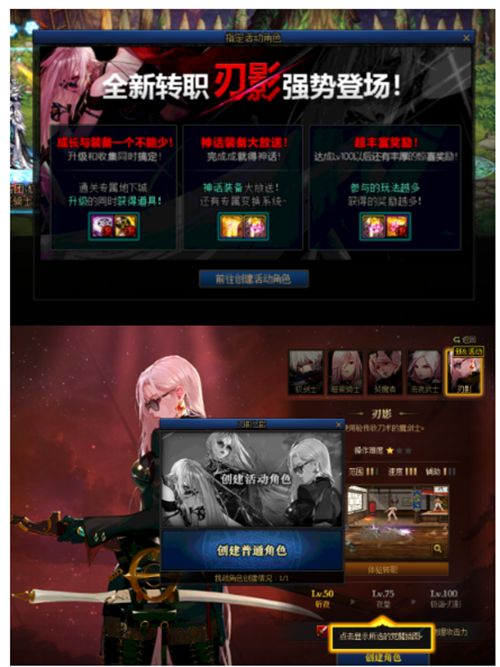 在选角界面可直接创建活动挑战角色——转职刃影,然后正式开启我们的升级之路。