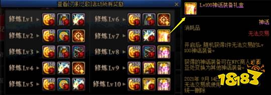 9阶段副本击杀怪物会概率掉落神话装备、百级史诗、代号希望装备、魔界大战护石与符文,点击惊喜奖励小球可查看各个副本可掉落的装备。10阶段在9阶段可获物品的基础上,击杀怪物概率掉落若干的绝望矿石,boss房间概率闯入希洛克怪物,击杀可得紫英花瓣。