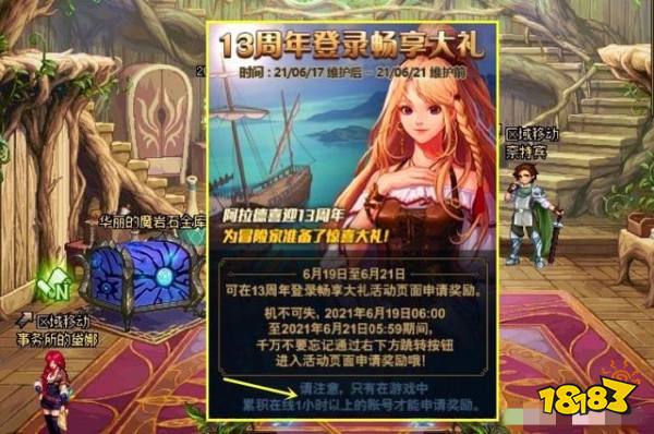 1.活动规则全解读周年庆系列活动在“6月17日”正式启动,届时奥兹玛团本、各种史诗神话活动齐开,但是,周年庆站街奖励活动时间,是在“6月19日6:00到6月21日5:59”,也就是周末两天时间,千万不要记错了时间。其次,此次站街活动,新增了一条新规定,账号在线时间要求1小时,才能激活“申请奖励”,与以往的登录即可不同,想来策划是想打击工作室。